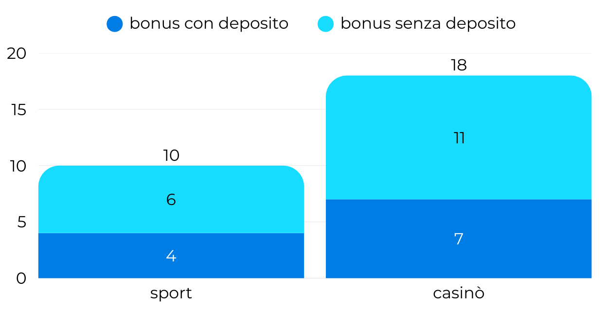 *abbiamo escluso i bonus “doppioni” cioè i bonus benvenuto emessi dallo stesso sito e abbiamo lasciato solo il più conveniente