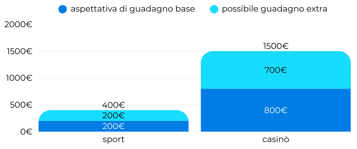Il guadagno medio da bonus benvenuto sport e casinò a guadagno statistico.
